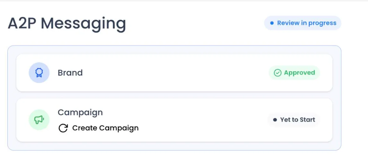 Once your Brand registration is successfully approved as part of the A2P 10DLC (Application-to-Person 10-Digit Long Code) setup, the next essential step is to register a Campaign associated with that Brand. This step is mandatory to begin sending A2P messages through 10DLC phone numbers.